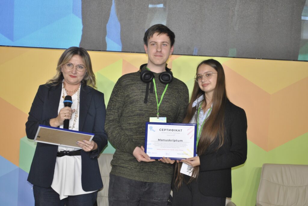 Перше місце у секції та перемогу у номінації «Краще стартап-рішення проблем клієнта» виборола команда проєкту «Розробка рукавички для перекладу й озвучення жестів». Як пояснила авторка, учениця Українського фізико-математичного ліцею КНУ імені Тараса Шевченка Поліна Урсул, ідея проєкту полягає у створенні «розумної» рукавички, яка розпізнає та озвучує жестову мову у реальному часі. Система побудована на мікроконтролері з інерційними датчиками, що розташовані на фалангах пальців і модулем озвучення з динаміком для відтворення звуку. Алгоритм обробки даних через кватерніони (жест описують як набір чотирьох цифр) забезпечує точне розпізнавання рухів пальців без під’єднання до комп’ютера чи смартфона. З одного боку, рукавичка здатна виконувати роль перекладача та полегшувати комунікацію для людей з порушеннями мовлення, а з іншого — слугувати тренажером для вивчення жестової мови й бути частиною навчальної програми. За словами винахідниці, вже розроблено архітектуру рукавички й авторську математичну модель для розпізнавання жестів, а також розпочато створення первинного продукту.