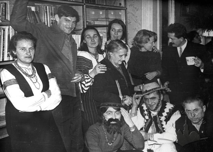 Вертеп у домі Садовських у Львові. За кілька днів до початку арештів представників шістдесятництва 12 січня 1972 р. Стоять ліворуч: Любомира Попадюк, Василь Стус, Олена Антонів, Ірина Калинець, Марія й Ганна Садовські, Михайло Горинь; сидять – Стефанія Шабатура («циган»), Мар’ян Гатало, Олександр Кузьменко